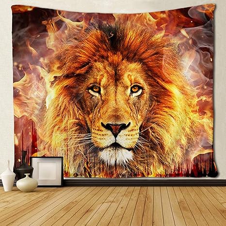 Amazon Com Sara Nell Cool Fire Lion Flame Tapestry Art Wall Hippie Art Lion Tapestries Wall Hanging Throw Tablecloth 50x60 Inches For Bedroom Living Room Dorm Room Home Kitchen