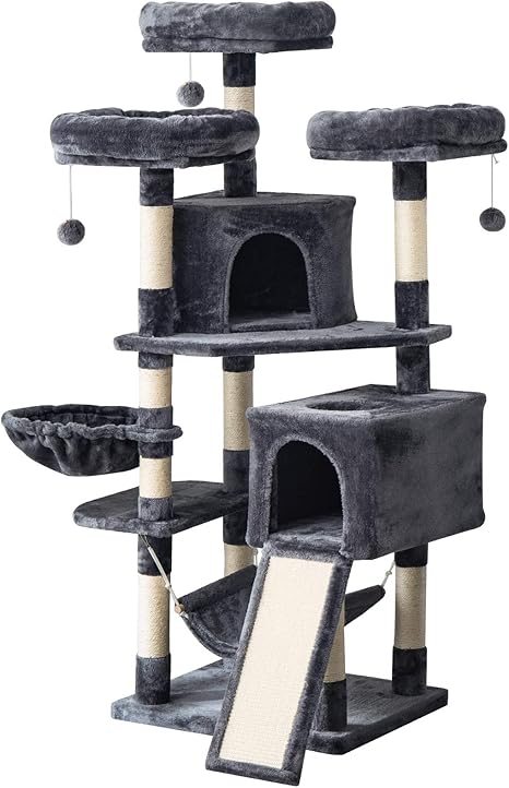 Amazon Com Ibuyke 63 Cat Tree Tower For Large Cats Play Furniture Cat Condo With Sisal Scratching Posts Board Cat Hammock Basket Dangling Balls Smoke Gray Uct021g Pet Supplies